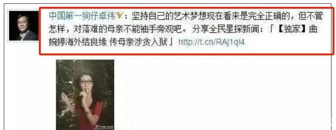 就连“中国第一狗仔”卓伟,都看不下去说道:你坚持梦想这个事没错,可你不能对因为贪腐入狱的母亲不管不顾吧?